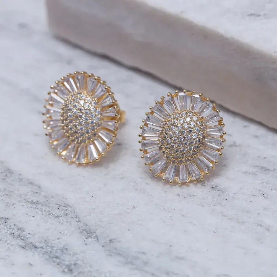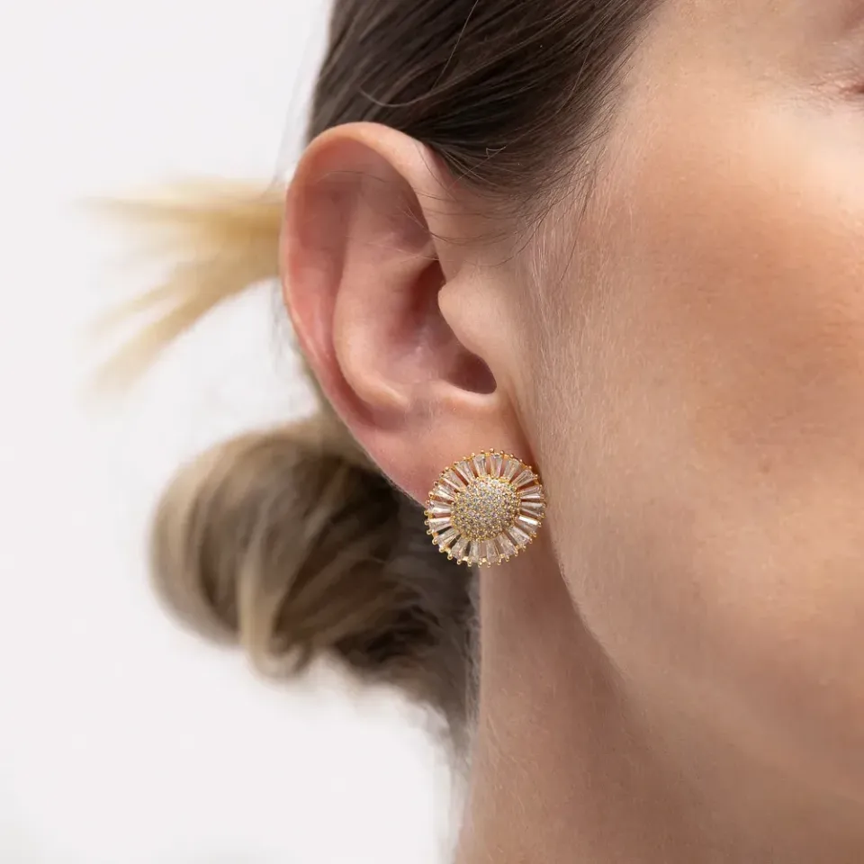 BRINCO GIRASSOL CRAVEJADO BANHO OURO 18K