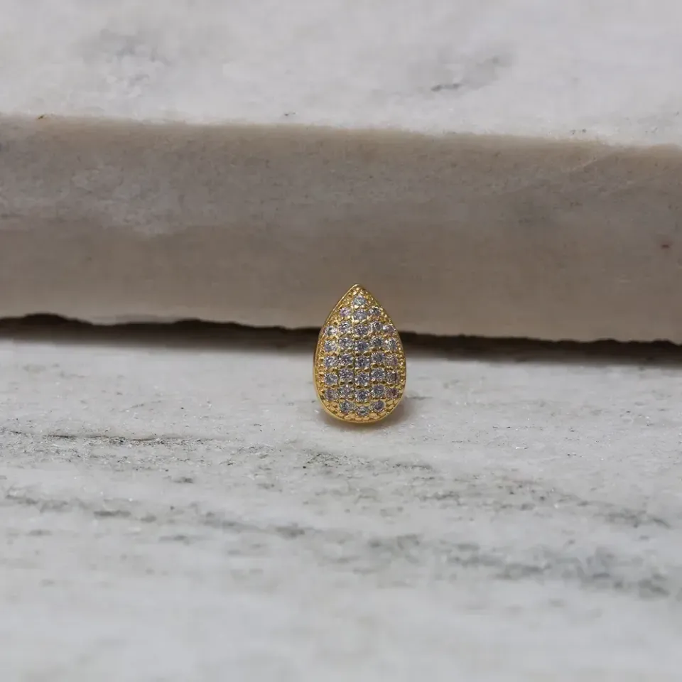 BRINCO GOTA G CRAVEJADA COM ZIRCÔNIAS BANHO OURO 18K