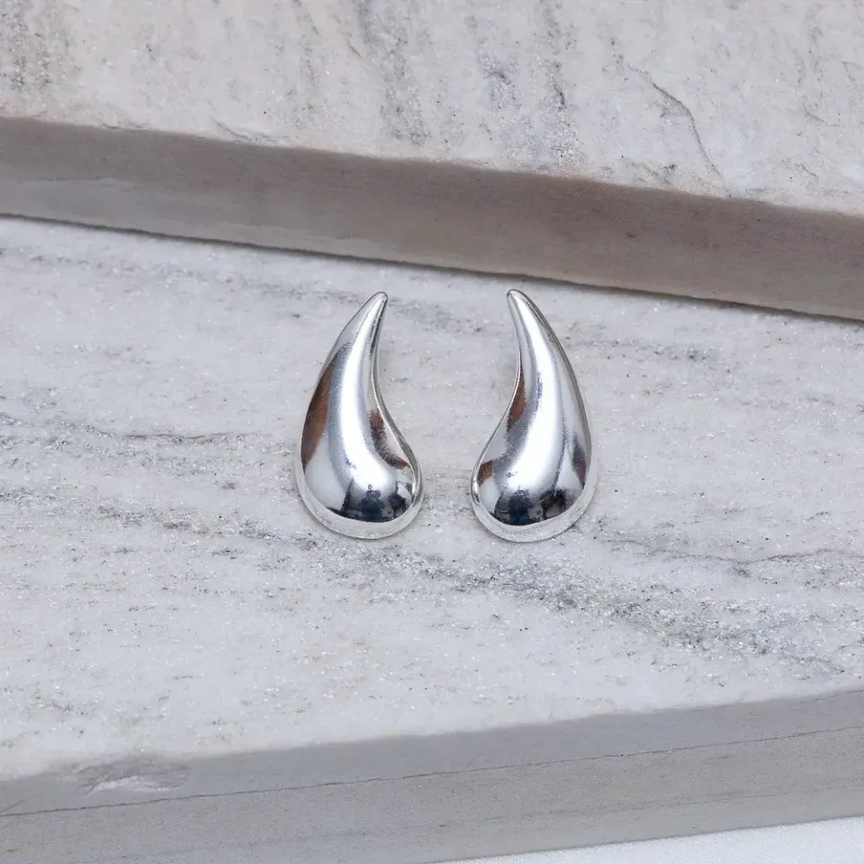 Brinco Gota Lisa M em banho Prata