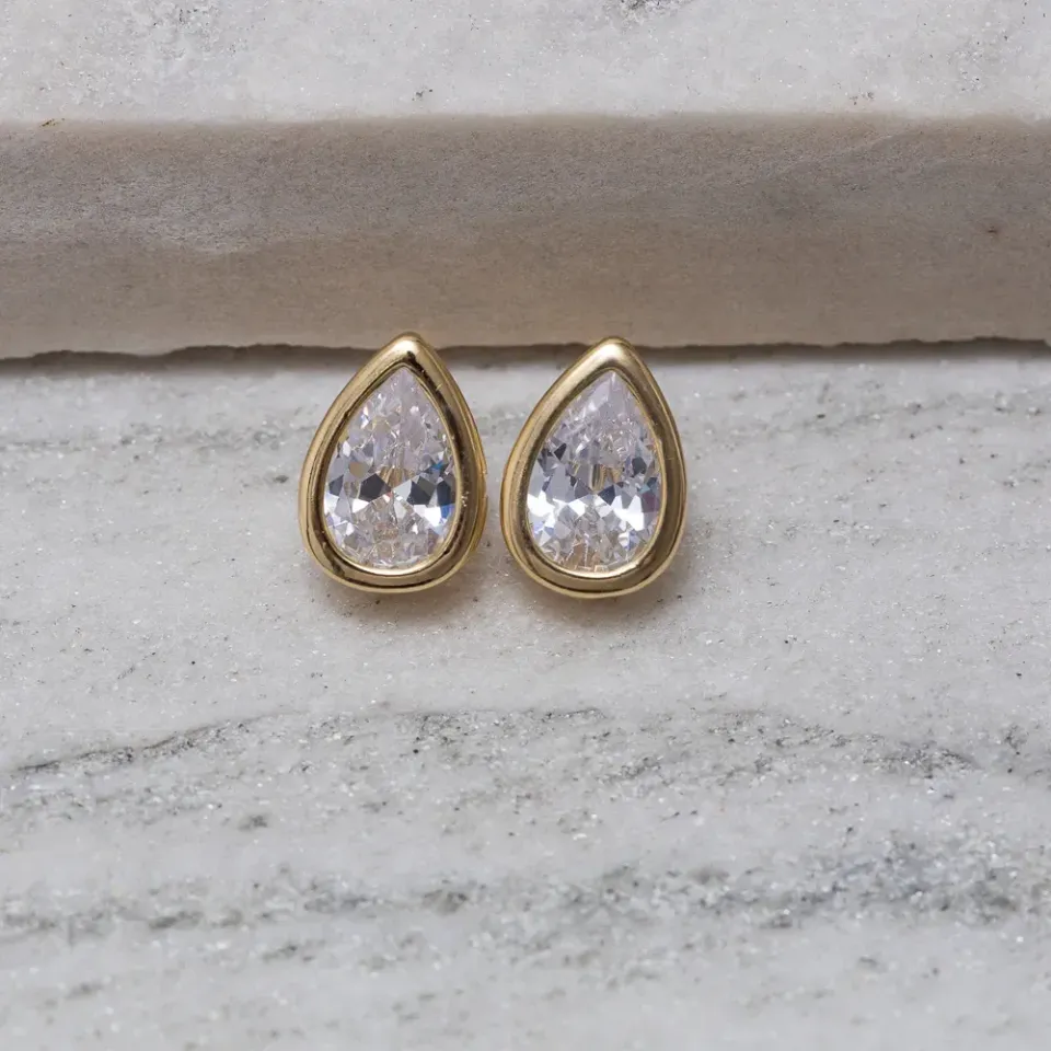 Brinco Gota com Pedra Cristal em banho Ouro 18K