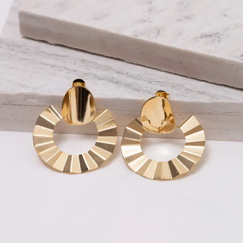 BRINCO GRANDE ONDULADO BANHO OURO 18K