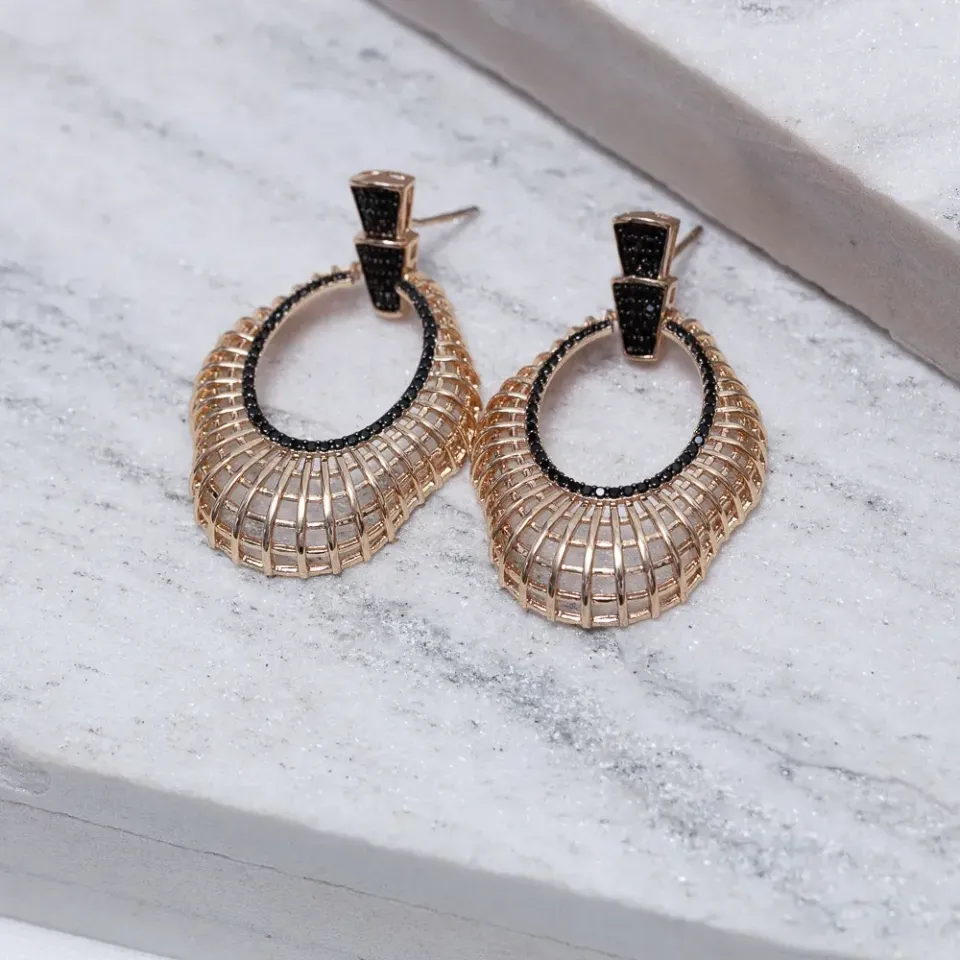 Brinco Indiano com Zircônias Negras em banho Rosé