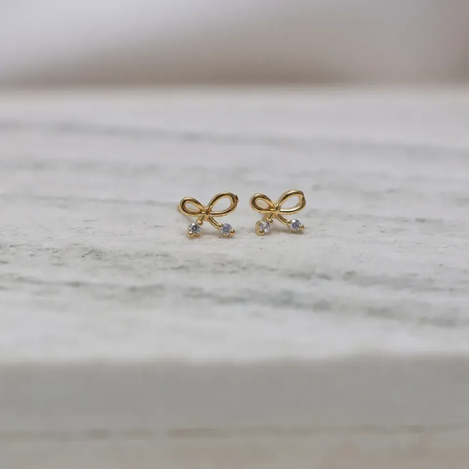 Brinco Laço Vazado com Zircônia em banho Ouro 18K