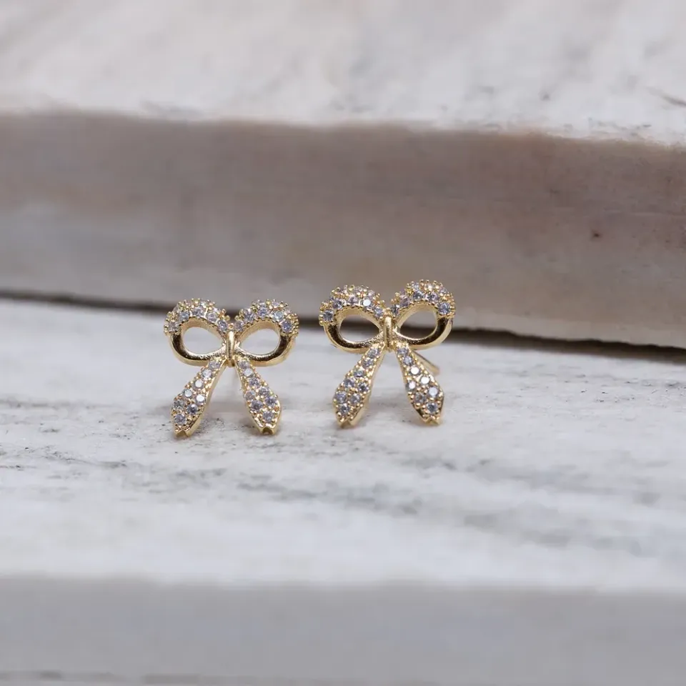 Brinco Laço Cravejado Cristal em banho Ouro 18K