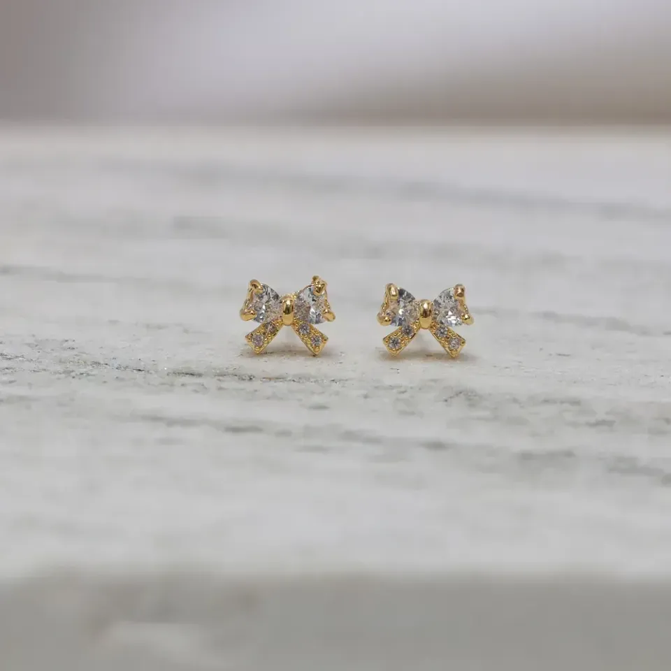 Brinco Laço com Zircônia P em banho Ouro 18K