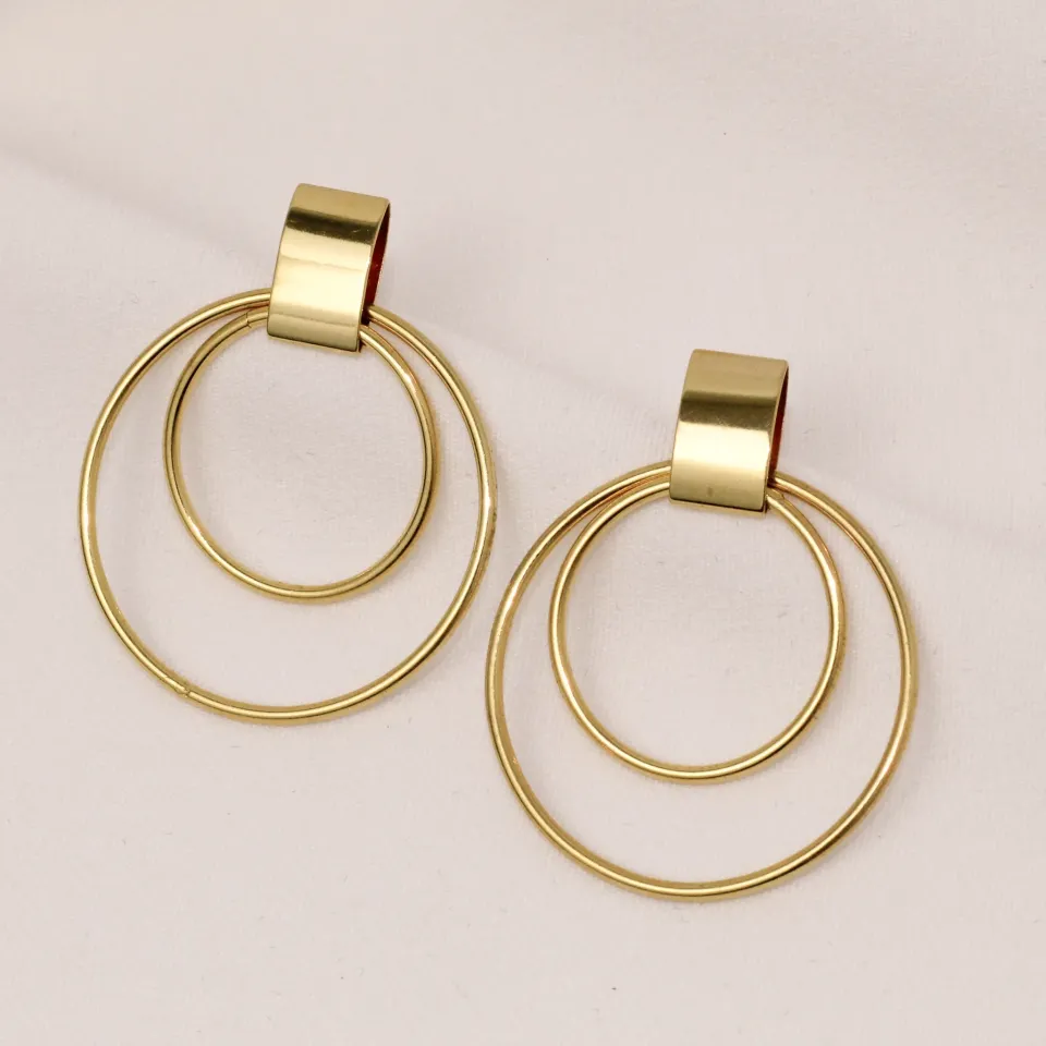 BRINCO LISO ARGOLA DUPLA BANHO OURO 18K