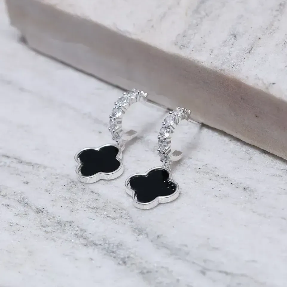 BRINCO MEIA ARGOLA VIRGINIA PRETO BANHO PRATA