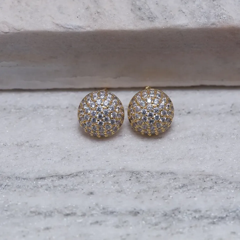 BRINCO MEIA BOLA CRAVEJADO BANHO OURO 18K