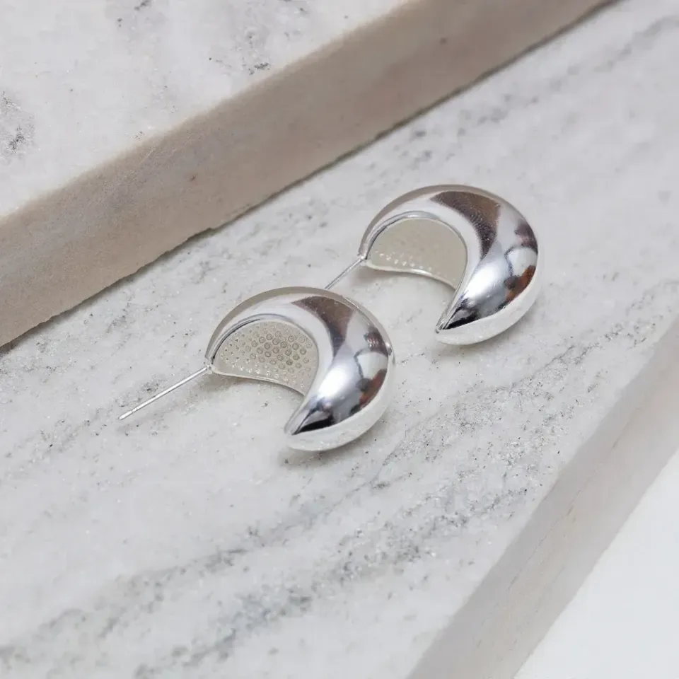 BRINCO MEIA LUA LISO ABAULADO BANHO PRATA