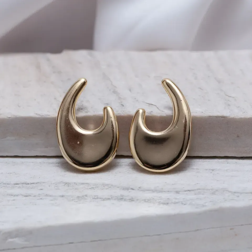BRINCO ORGÂNICO GRANDE LISO BANHO OURO 18K