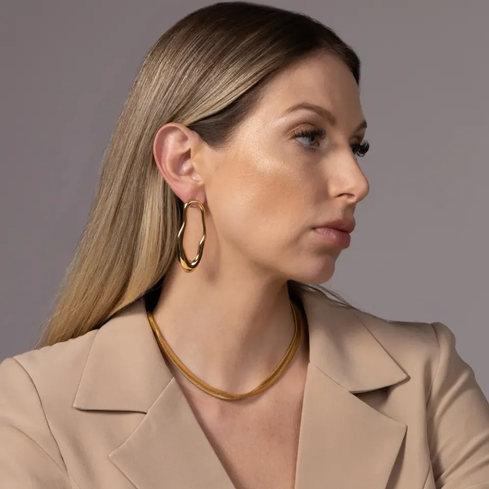 BRINCO ORGÂNICO LISO BANHO OURO 18K