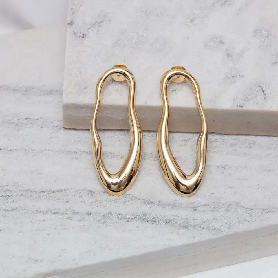 Brinco Orgânico Liso em banho Ouro 18K