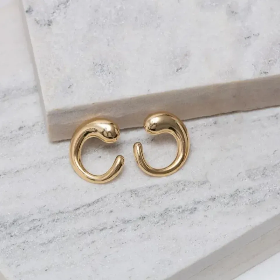 BRINCO ORGÂNICO LISO BANHO OURO 18K