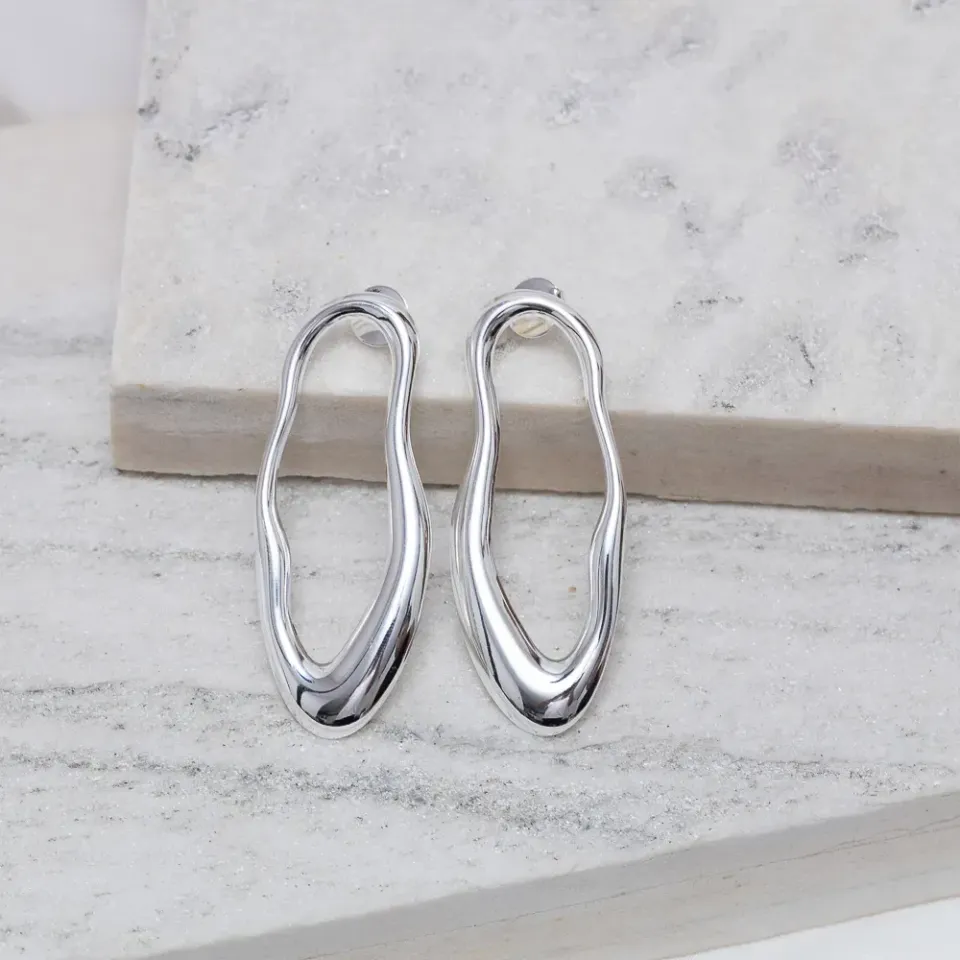 Brinco Orgânico Liso em banho Prata