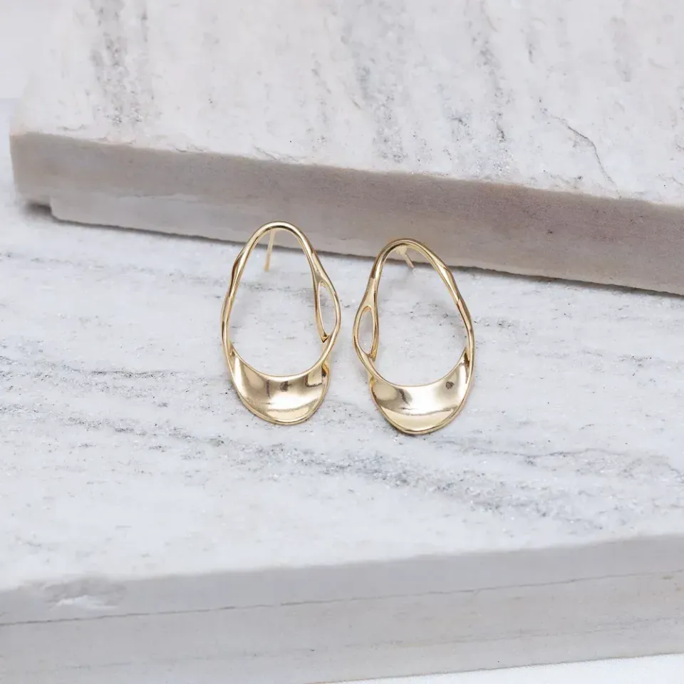 Brinco Orgânico Vazado Fino em banho Ouro 18K