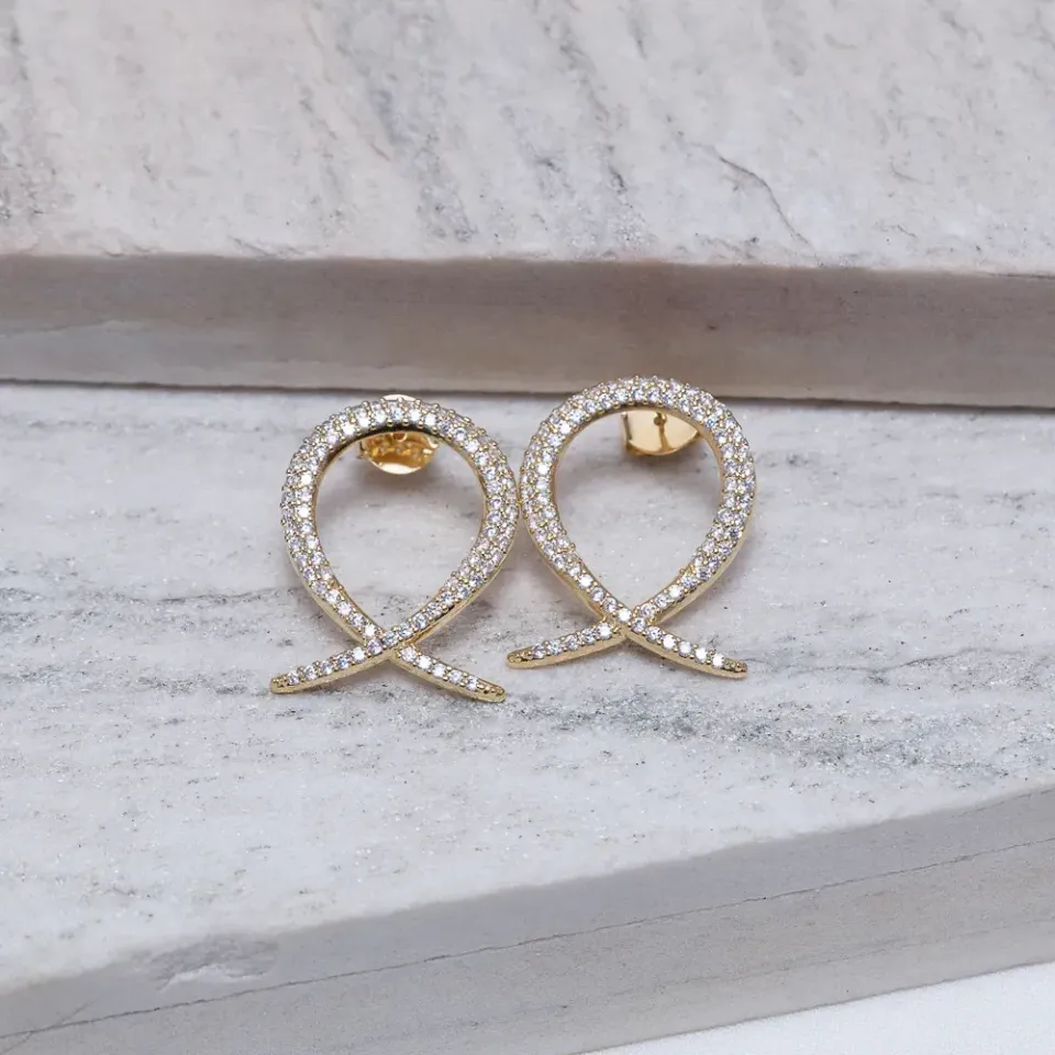 Brinco Peixinho Cravejado Vazado em banho Ouro 18K