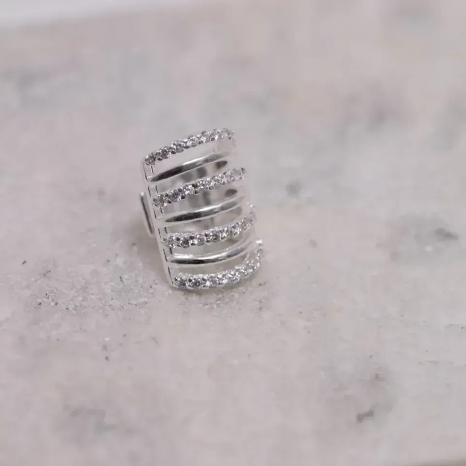 BRINCO FAKE CRAVEJADO COM ZIRCÔNIAS CRISTAIS BANHO PRATA