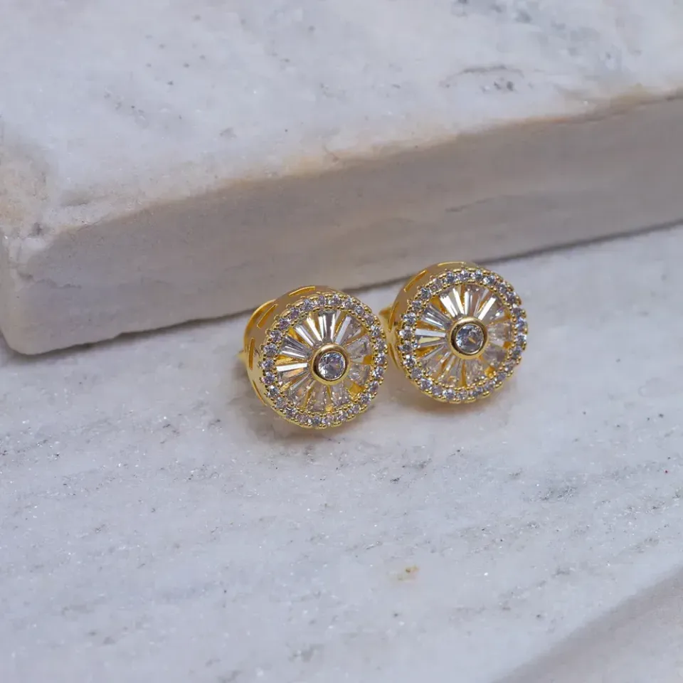 BRINCO PIZZA CRAVEJADO COM ZIRCÔNIAS CRISTAIS BANHO OURO 18K