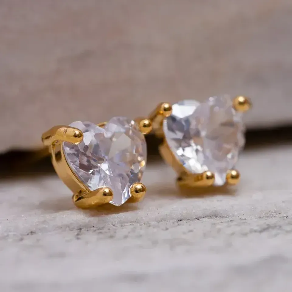 Brinco Ponto de Luz Coração com Zircônia Cristal em banho Ouro 18K