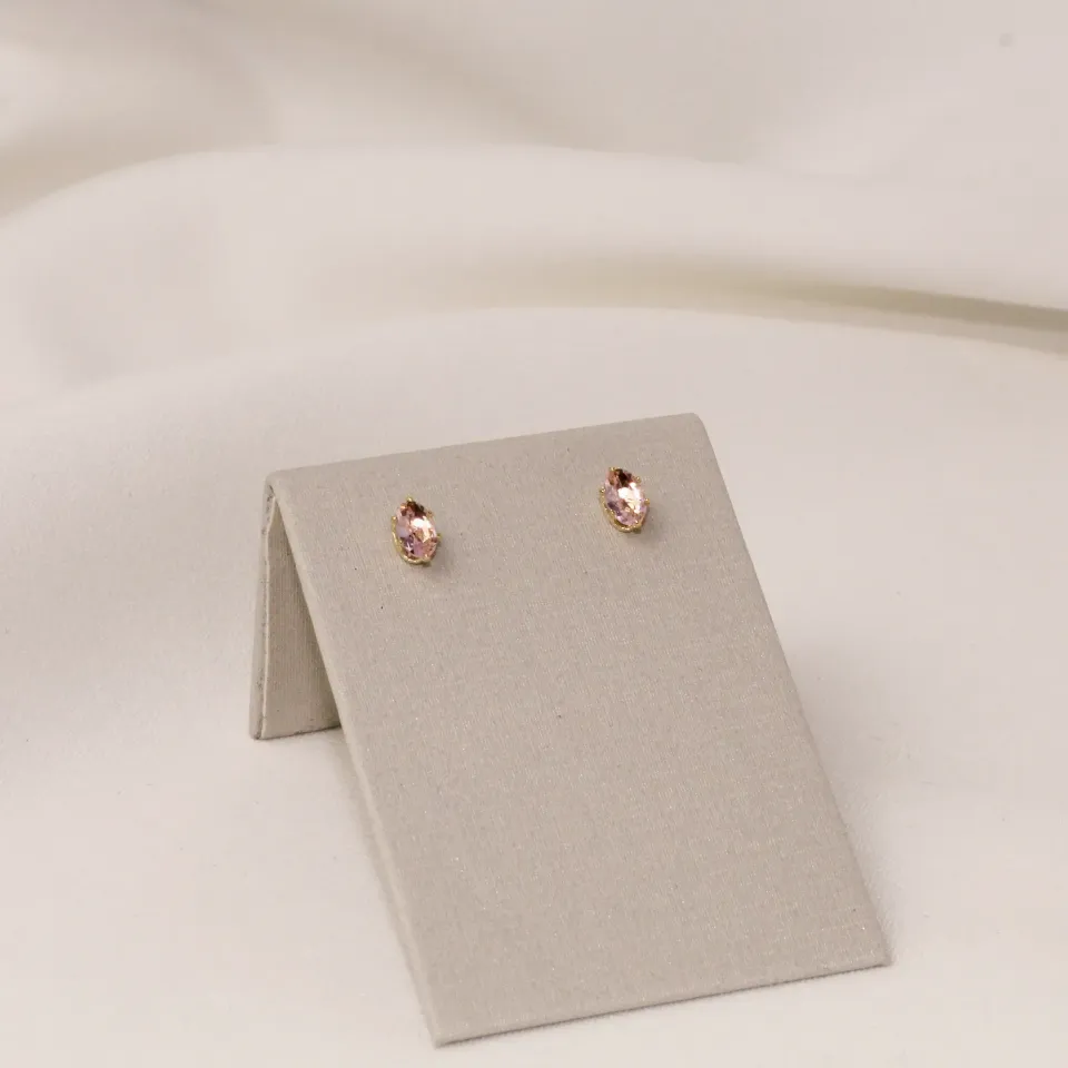 BRINCO PONTO DE LUZ OVAL PEDRA ROSA CLARO BANHO OURO 18K