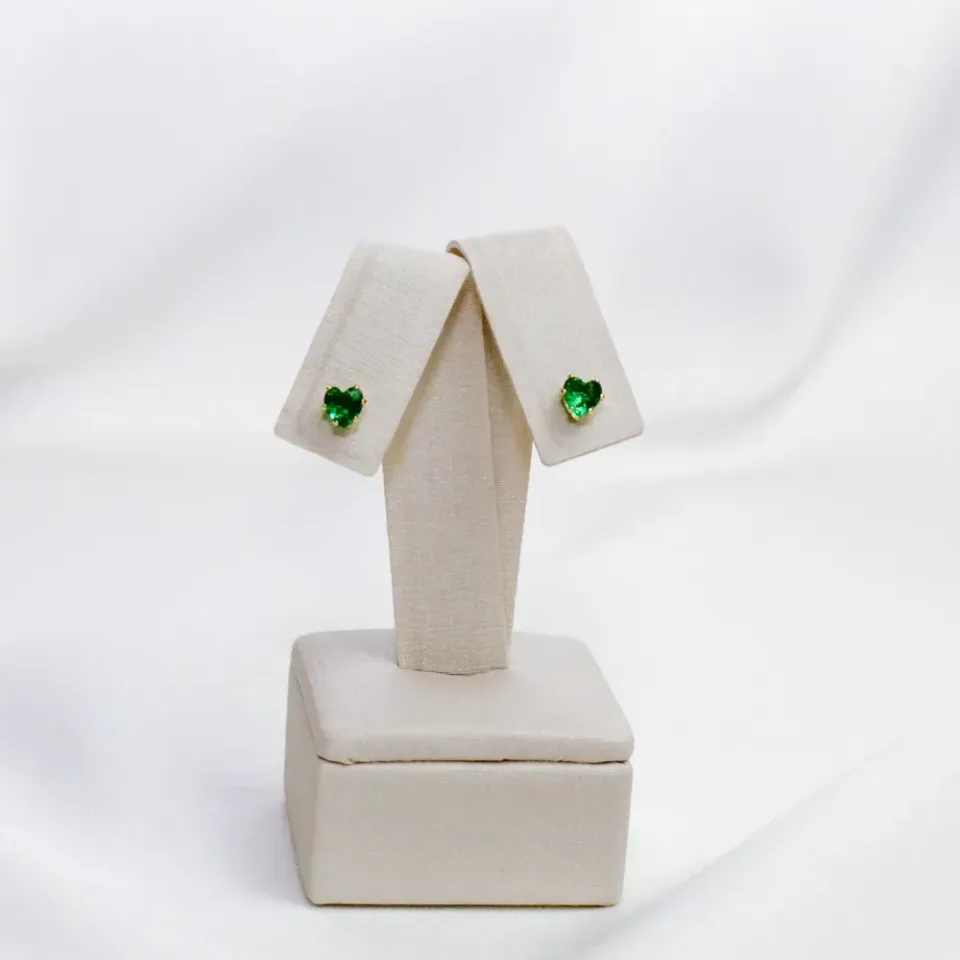 BRINCO PONTO DE LUZ VERDE EM CORAÇÃO BANHO OURO 18K