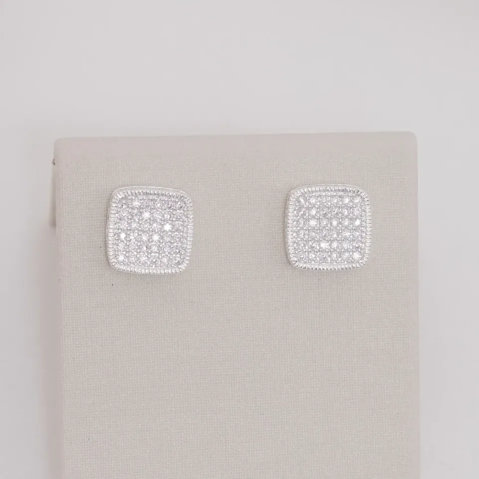 BRINCO BANHADO A PRATA, QUADRADO CRAVEJADO COM ZIRCÔNIAS .