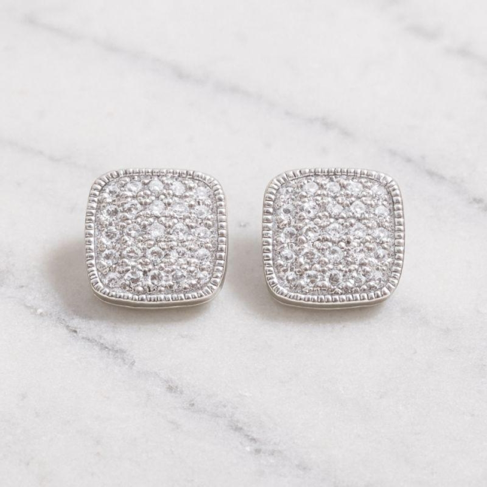 BRINCO QUADRADO COM ZIRCÔNIAS CRAVEJADAS BANHO PRATA