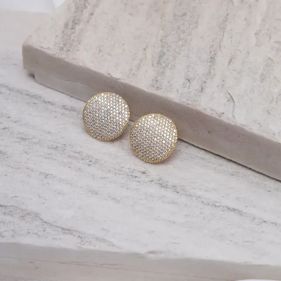 BRINCO REDONDO CRAVEJADO COM ZIRCÔNIAS CRISTAIS BANHO OURO 18K