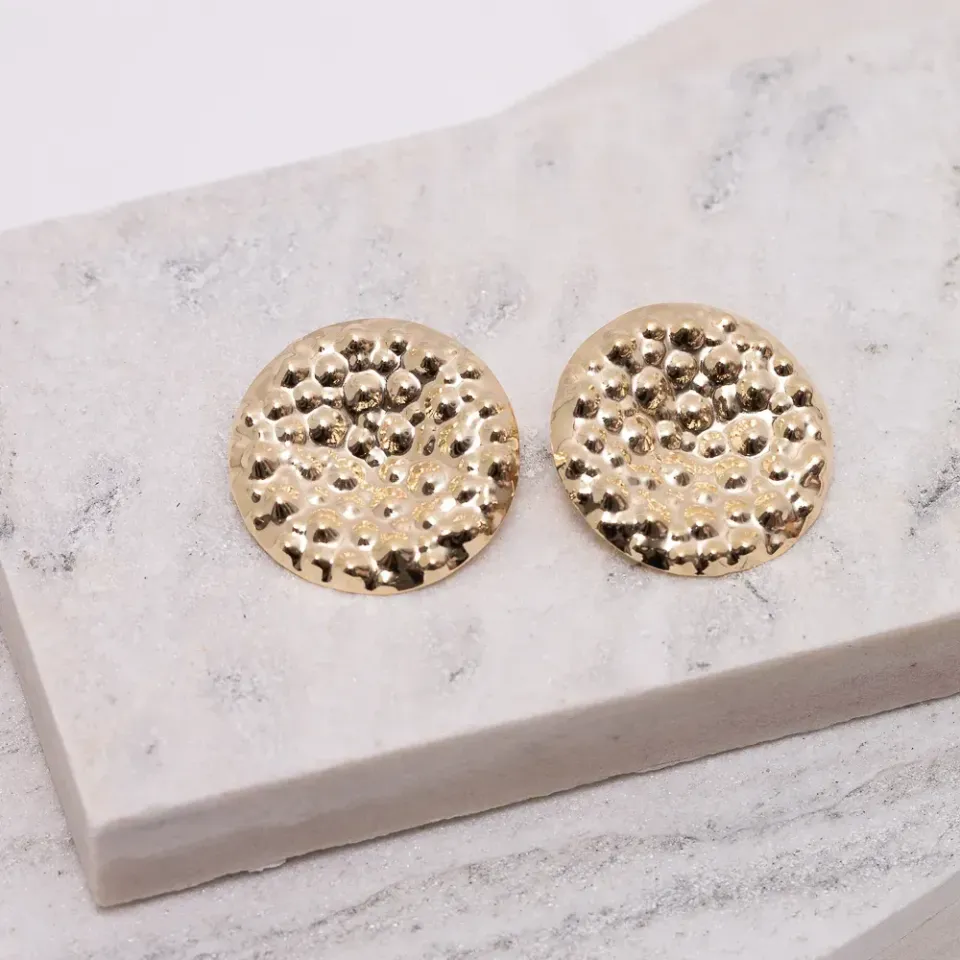 BRINCO REDONDO AMASSADO GRANDE BANHO OURO 18K