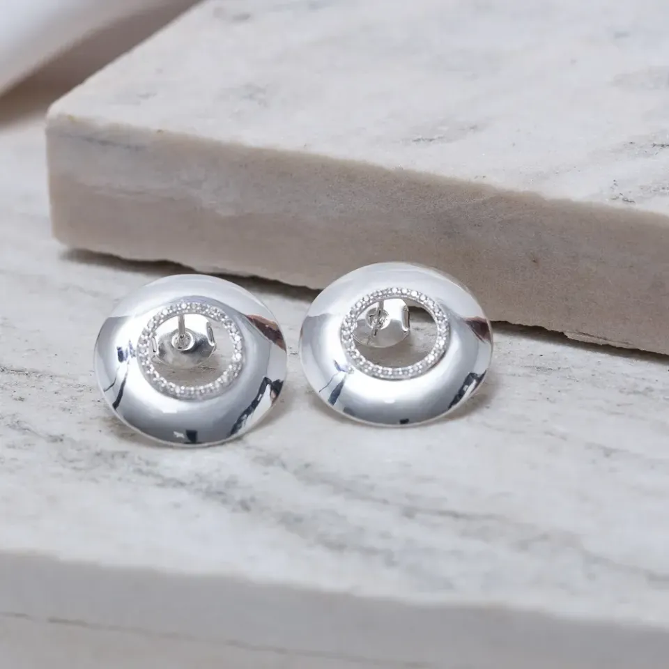 BRINCO REDONDO VAZADO COM ZIRCÔNIAS BANHO PRATA