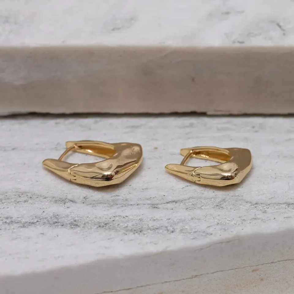 Brinco Argola Retangular G Martelada em banho Ouro 18K
