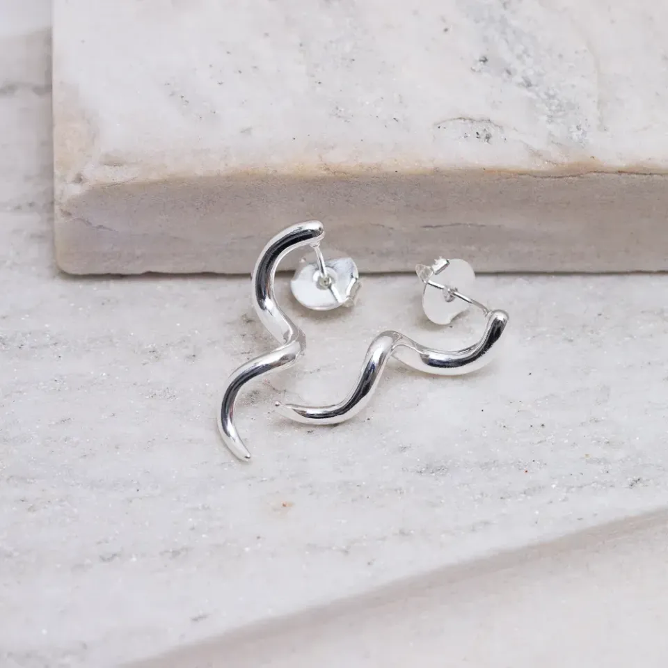 Brinco Retorcido Liso M em banho Prata