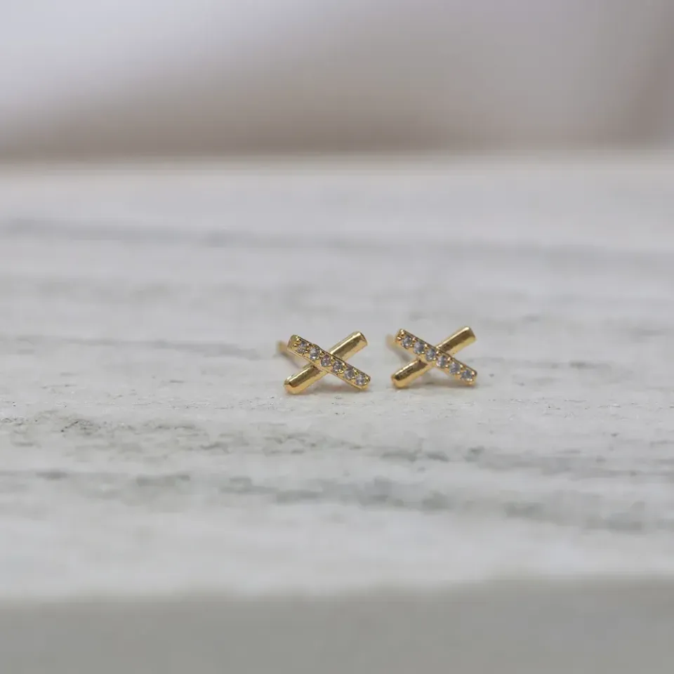 Brinco X com Zircônia em banho Ouro 18K