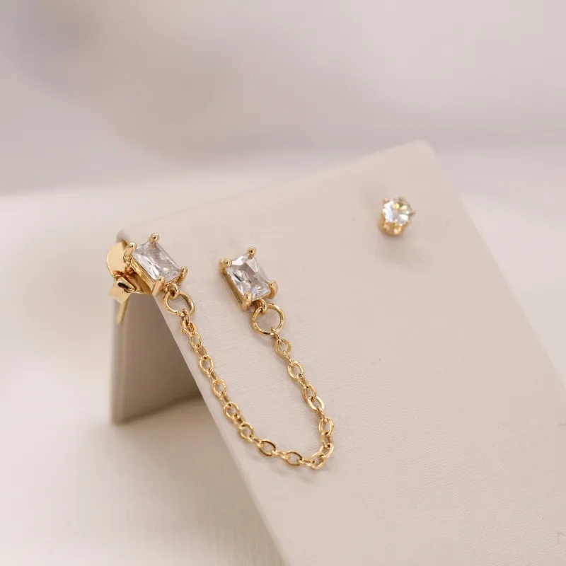 BRINCO ZIRCÔNIA COM CORRENTINHA BANHO OURO 18K