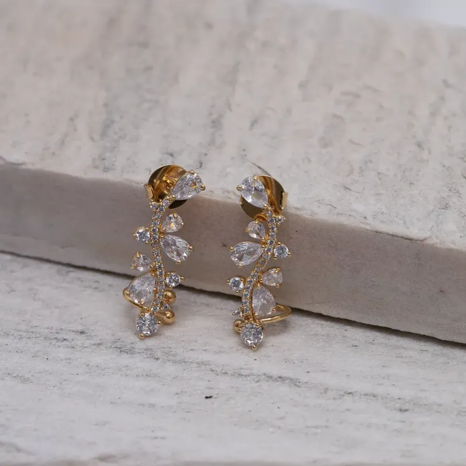 BRINCO EAR CUFF RAVEJADO COM ZIRCÔNIAS CRISTAIS BANHO OURO 18K