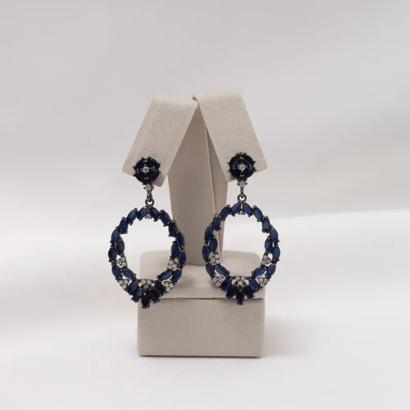 BRINCO COM ZIRCÔNIA LEITOSA AZUL MARINHO BANHO RÓDIO NEGRO