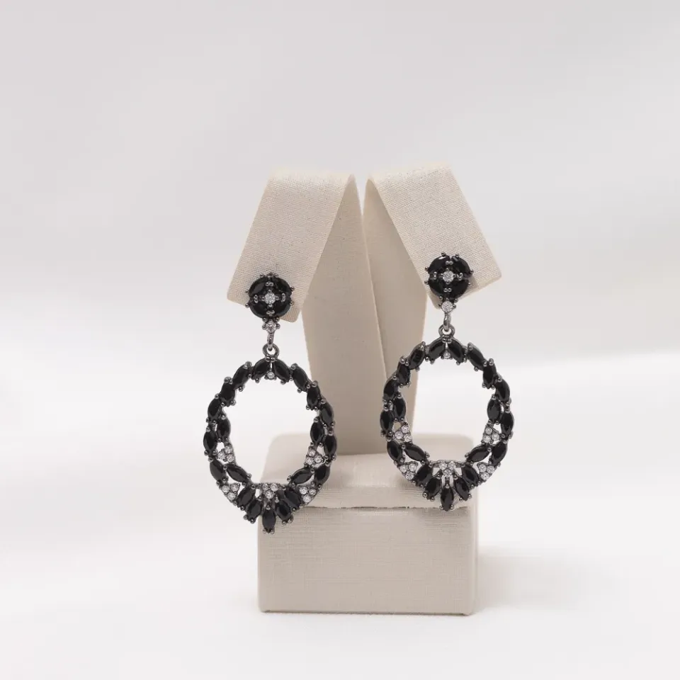 BRINCO ZIRCÔNIA PRETA BANHO RÓDIO NEGRO