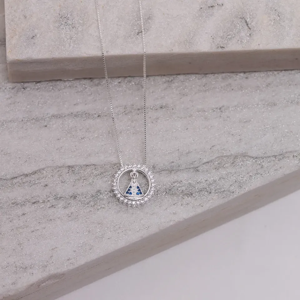 CHOCKER ZIRCÔNIA COM NOSSA SENHORA BANHO PRATA