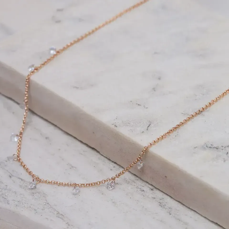 CHOKER ELO PORTUGUÊS PP COM ZIRCÔNIAS CRISTAIS BANHO ROSÉ