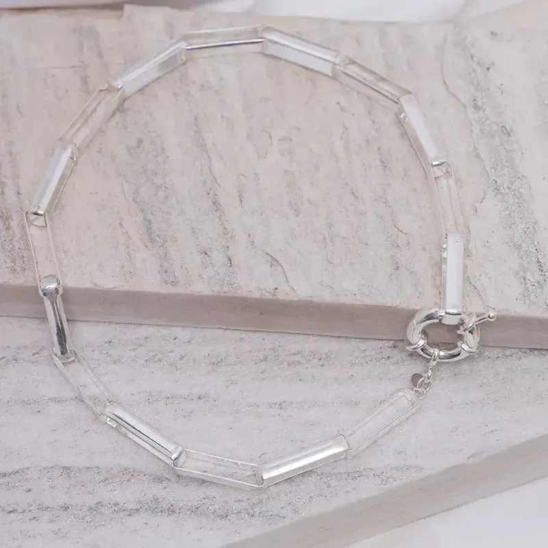 CHOKER ELO QUADRADO FECHO BOIA BANHO PRATA
