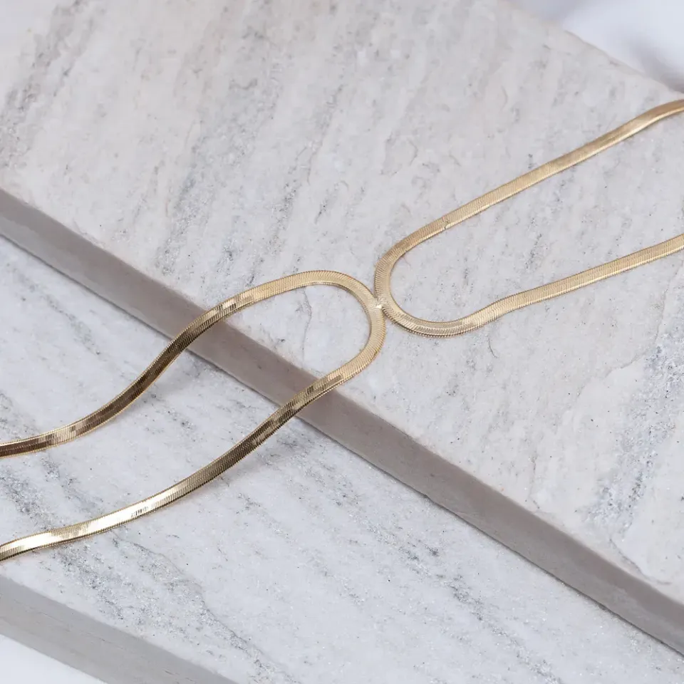 Colar Fita Espelhada 3mm em Banho Ouro 18K