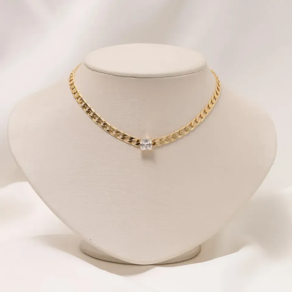 CHOKER GRUMET COM ZIRCÔNIA QUADRADA BANHO OURO 18K
