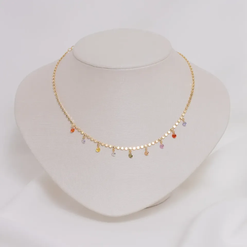 CHOKER DIAMANTADA COM CRISTAIS COLORIDOS BANHO OURO 18K