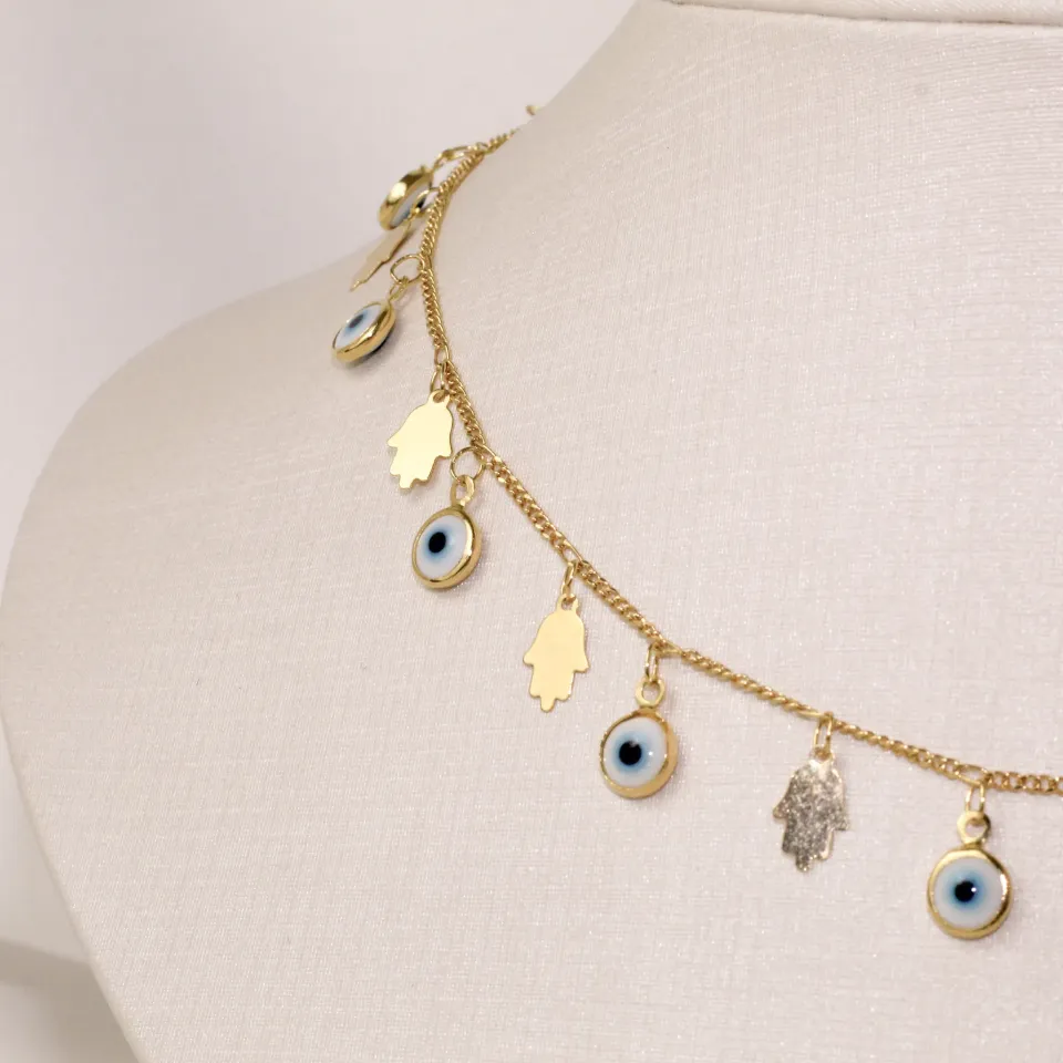 CHOKER OLHO GREGO E MÃO DE FÁTIMA BANHO OURO 18K
