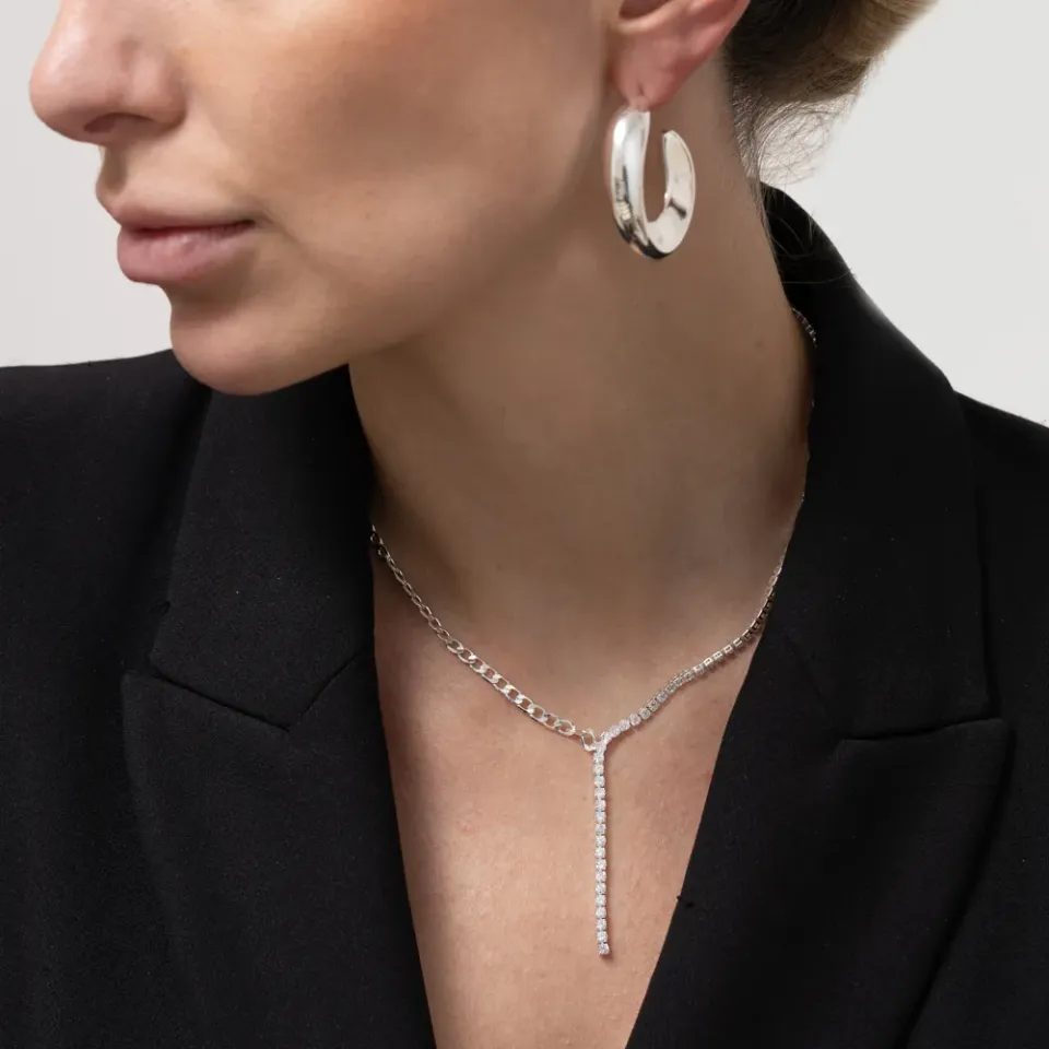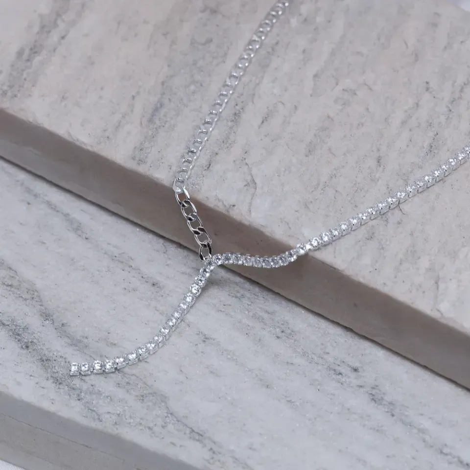 CHOKER PÊNDULO COM DUPLO ELO BANHO PRATA