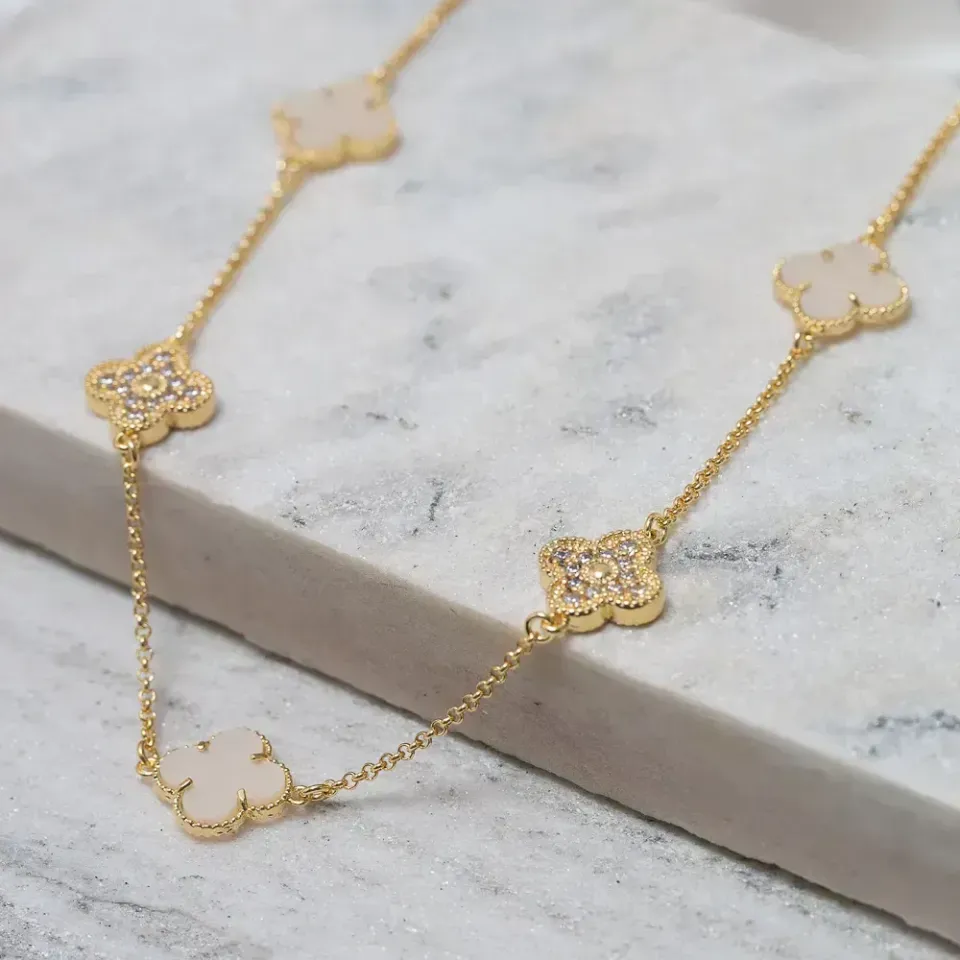 CHOKER VIRGINIA PEDRA MARFIM E ZIRCÔNIA CRISTAL BANHO OURO 18K