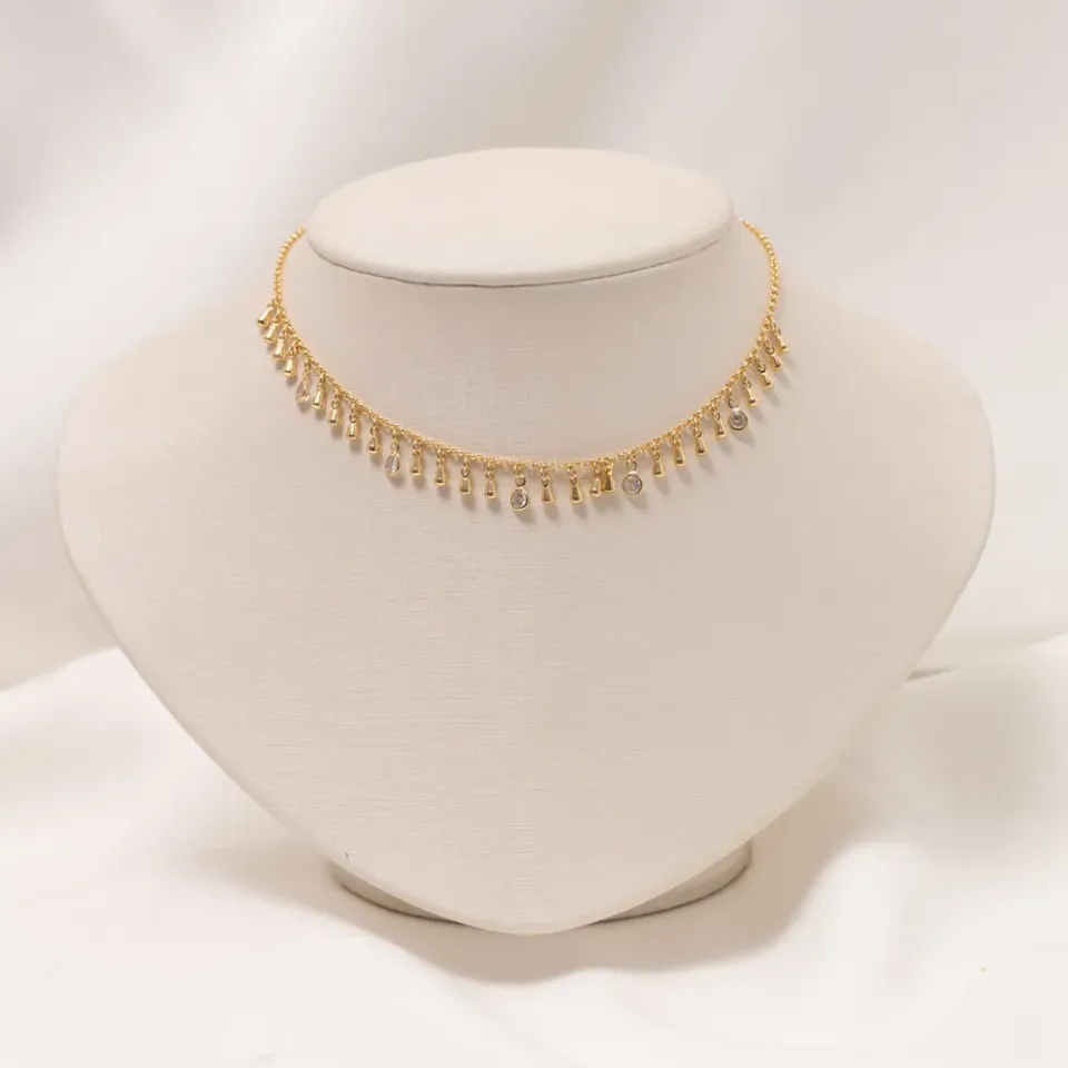 CHOKER ZIRCÔNIA GOTA BANHO OURO 18K