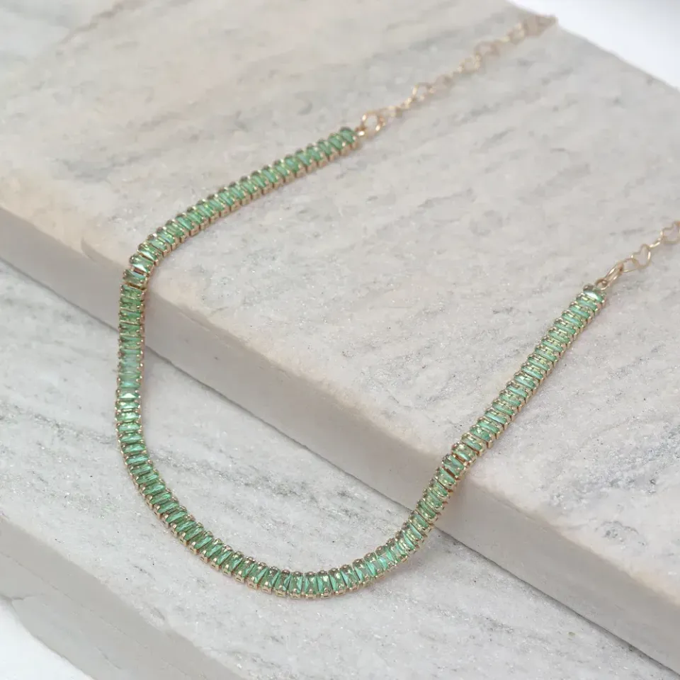 CHOKER RIVIERA COM ZIRCÔNIAS VERDE TIFFANY BANHO ROSÉ