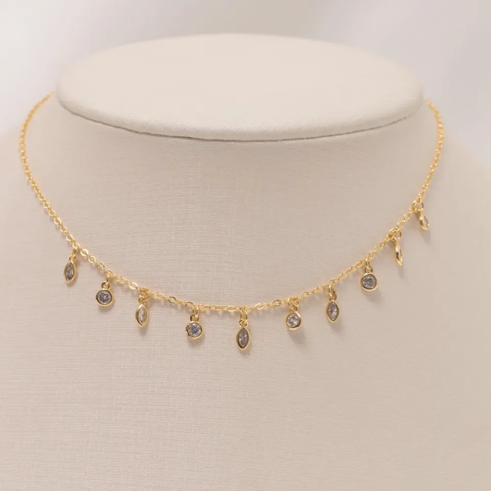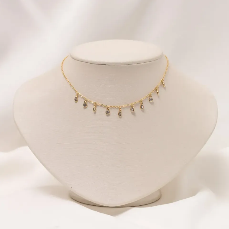 CHOKER ZIRCÔNIAS PENDURADAS BANHO OURO 18K