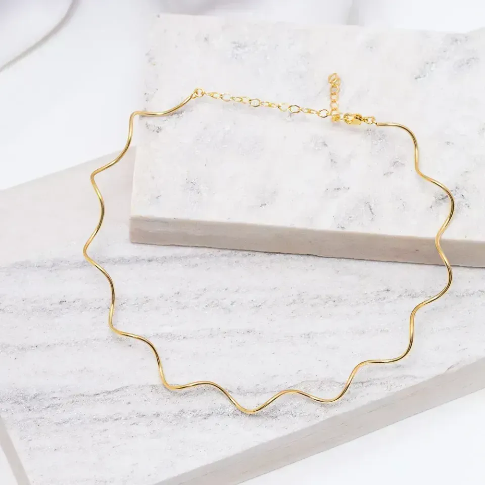 COLAR ARO ONDULADO LISO BANHO OURO 18K